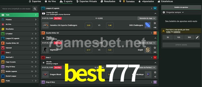 O best777 oferece uma grande seleção de opções de apostas em e-sports com probabilidades competitivas
